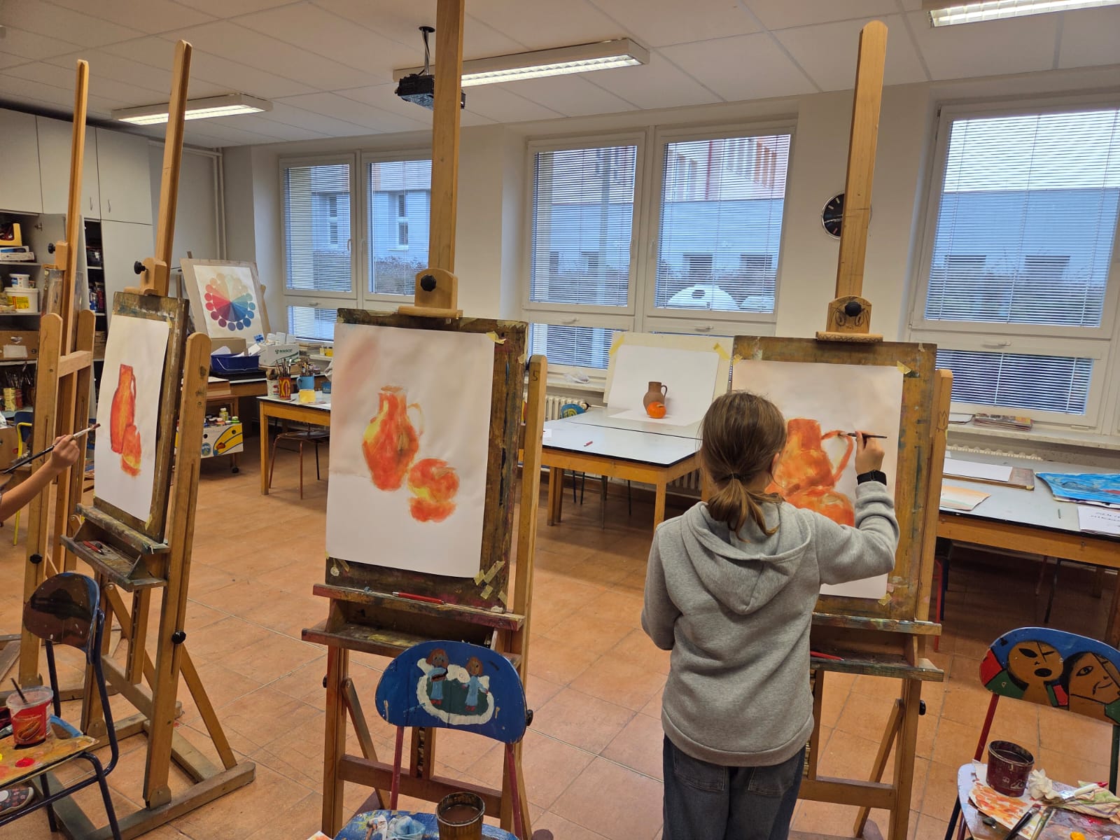 Ve VO naší ZUŠky letos (kromě jiného) střídáme volné a užité umění. Kresba a malba podle modelu, monochromy, ale i design - sklo, porcelán, šperky a nebo i čepice.